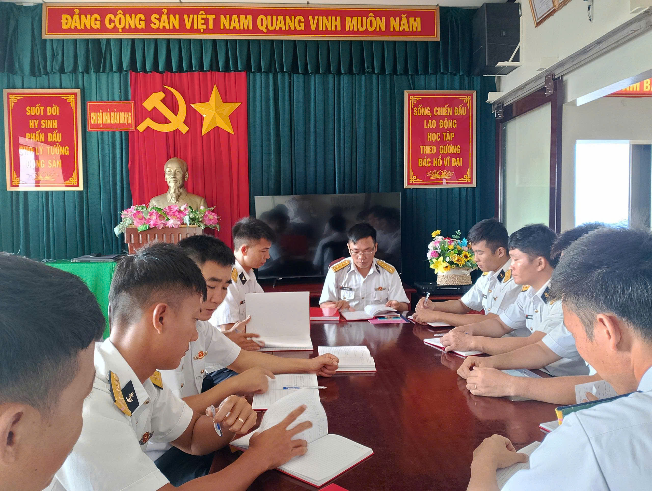 Đại úy Lưu Văn Dũng, Bí thư Chi bộ – Chính trị viên Nhà giàn DK1/16 duy trì sinh hoạt Chi bộ nhà giàn DK1/16
