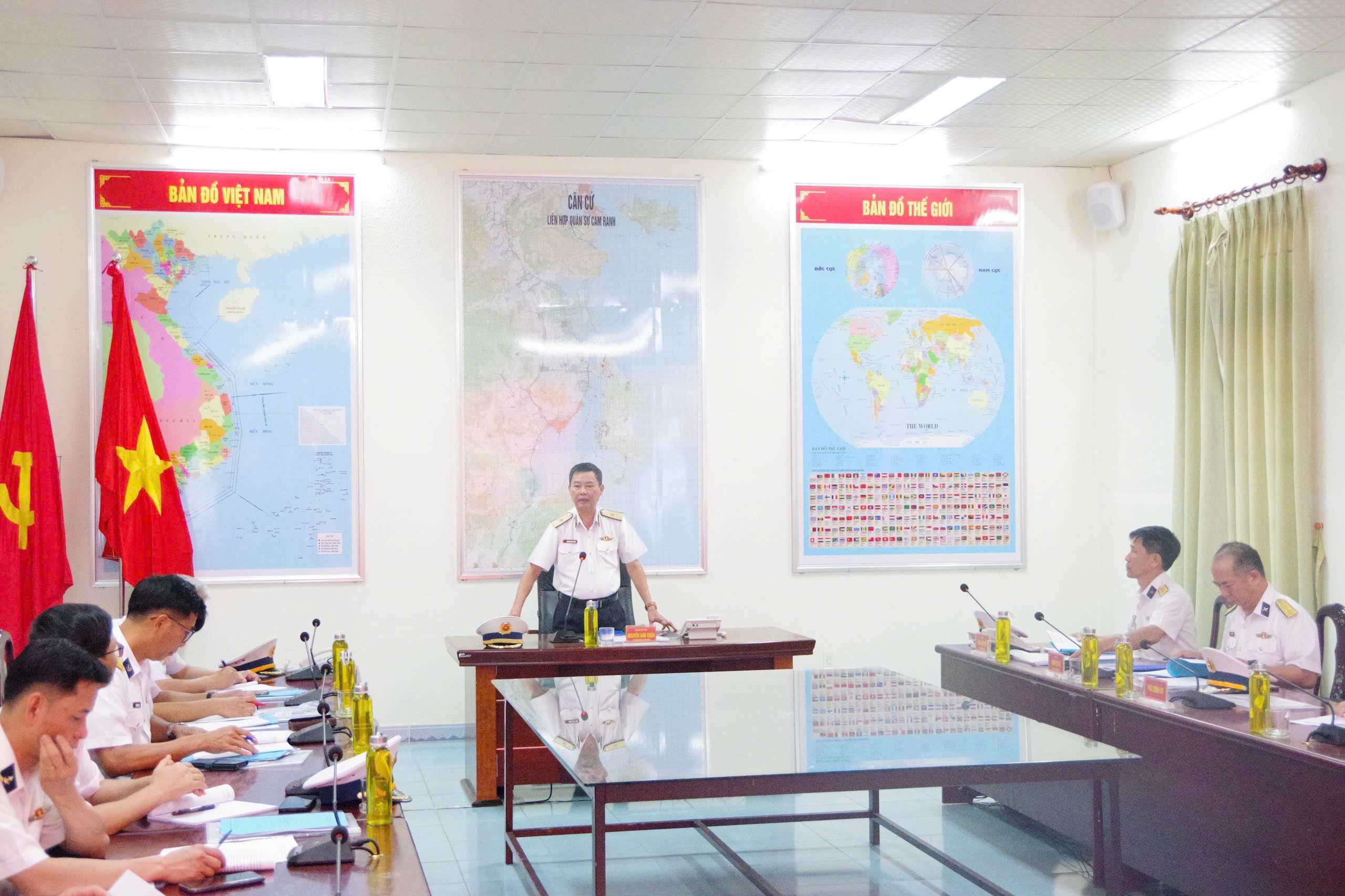 Chuẩn Đô đốc Nguyễn Anh Tuấn, Tư lệnh Vùng phổ biến kế hoạch kiểm tra.