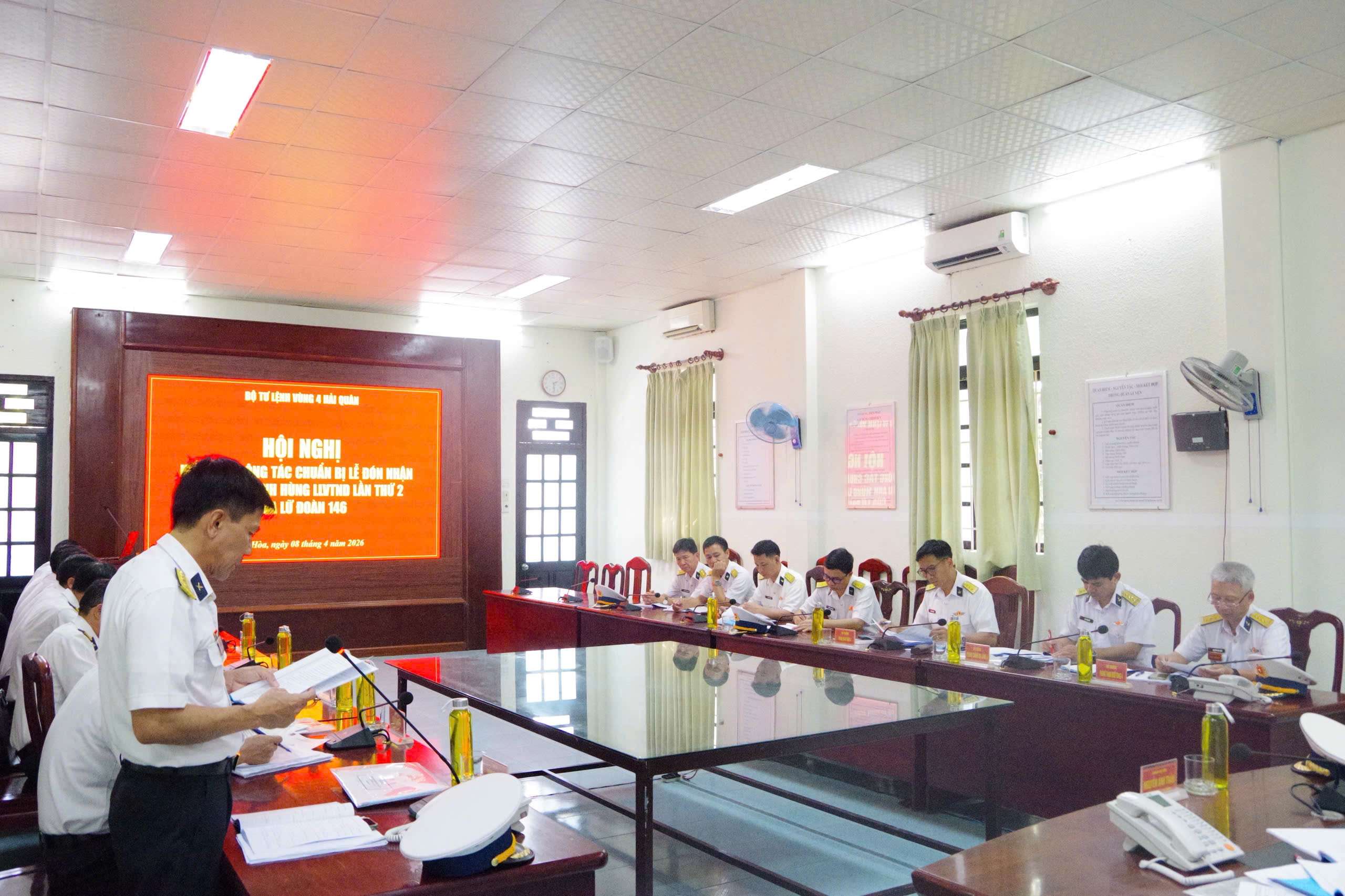 Tạp chí Biển Việt Nam - Chiều 08/4, tại phường Bắc Cam Ranh, tỉnh Khánh Hòa đoàn công tác của Bộ Tư lệnh Vùng 4 Hải quân do đồng chí Chuẩn Đô đốc Nguyễn Anh Tuấn, Tư lệnh Vùng dẫn đầu đã đến kiểm tra công tác chuẩn bị tổ chức Lễ đón nhận “Danh hiệu Anh hùng Lực lượng vũ trang nhân dân” (LLVTND) lần thứ 2 tại Lữ đoàn 146.