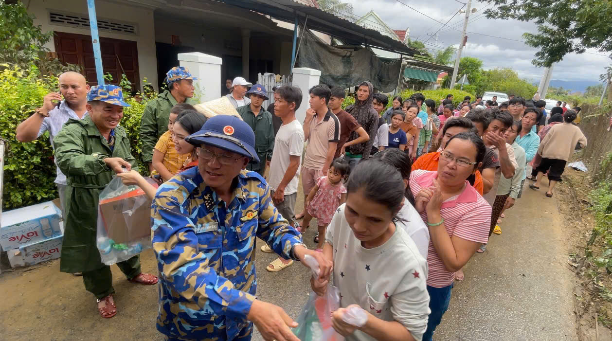 Tại các khu vực ngập sâu, nơi đời sống người dân đang bị đảo lộn sau nhiều ngày mưa lớn, Tư lệnh Vùng ân cần thăm hỏi, động viên từng hộ dân, trực tiếp trao quà hỗ trợ gồm nước sạch, lương khô, thuốc men và hướng dẫn bà con di chuyển đến khu vực an toàn. Rất nhiều người dân xúc động khi thấy lực lượng Vùng 4 Hải quân “ở đâu khó khăn, ở đó có bộ đội Hải quân”.