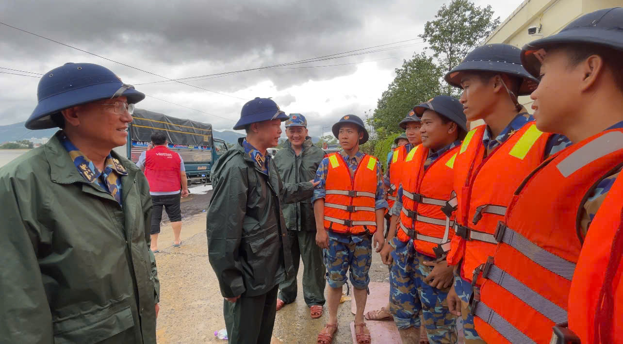 Tư lệnh Vùng 4 Hải quân thăm, động viên nhân dân Khánh Hòa và lực lượng làm nhiệm vụ cứu hộ trong mưa lũ