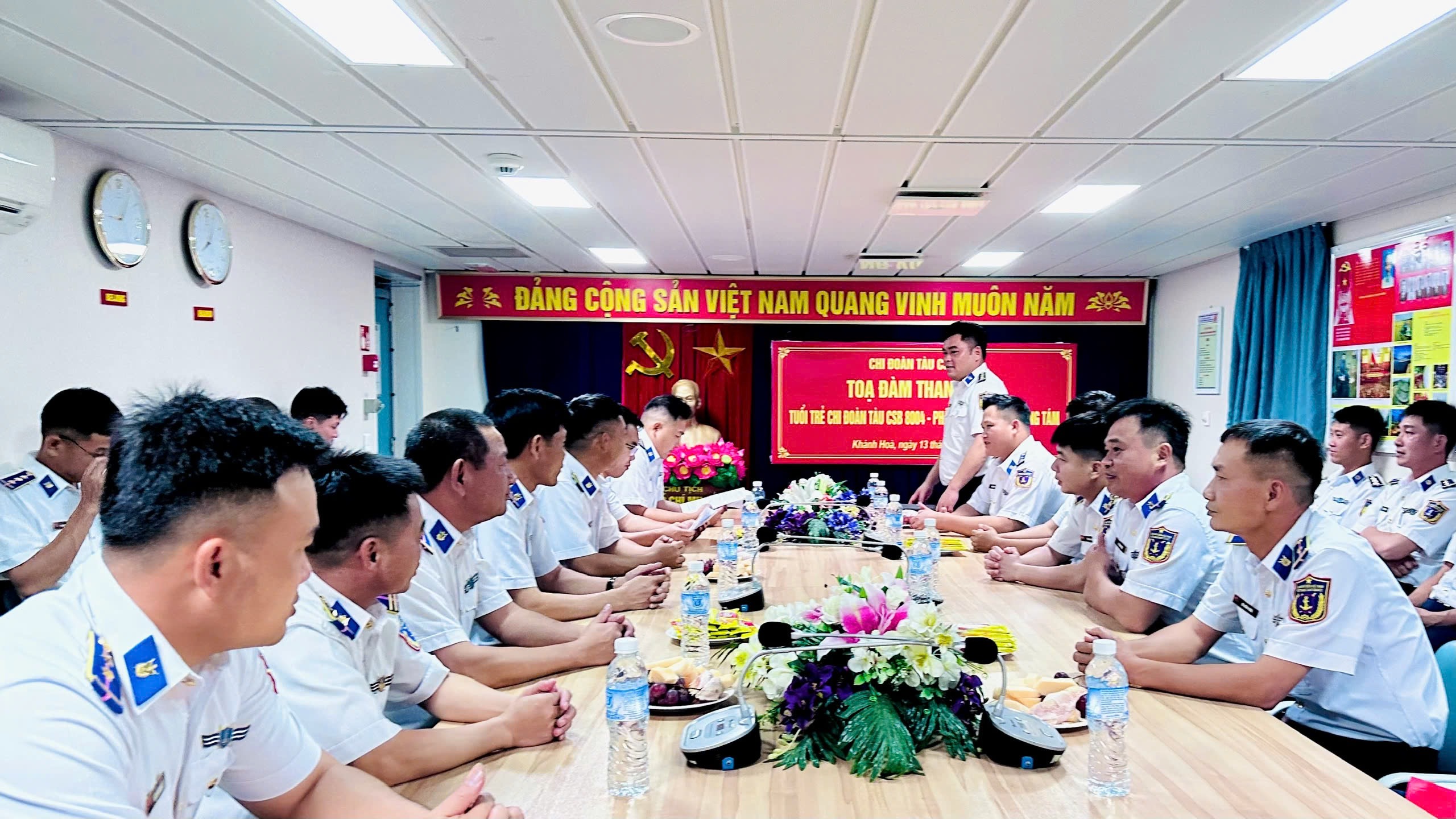 Phát biểu tại buổi tọa đàm, đồng chí Đại uý Vũ Tuấn AnhBí thư Chi bộ, Chính trị viên Tàu CSB 8004 biểu dương tinh thần trách nhiệm, sự cố gắng của cán bộ, đoàn viên thanh niên trong Chi đoàn thời gian qua, đồng thời kêu gọi toàn thể Chi đoàn tiếp tục đoàn kết, phát huy tinh thần trách nhiệm, xung kích,Phất cao cờ hồng Tháng Tám”, quyết tâm hoàn thành thắng lợi mọi nhiệm vụ được giao, đặc biệt là nhiệm vụ diễu binh trên biển trong ngày Lễ kỷ niệm trọng đại của đất nước.