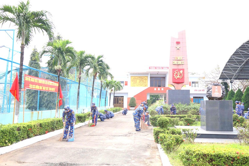 Cán bộ, đoàn viên và hội viên Hội Phụ nữ Lữ đoàn đã tổ chức tổng dọn vệ sinh môi trường; chăm sóc, cắt tỉa cây xanh.