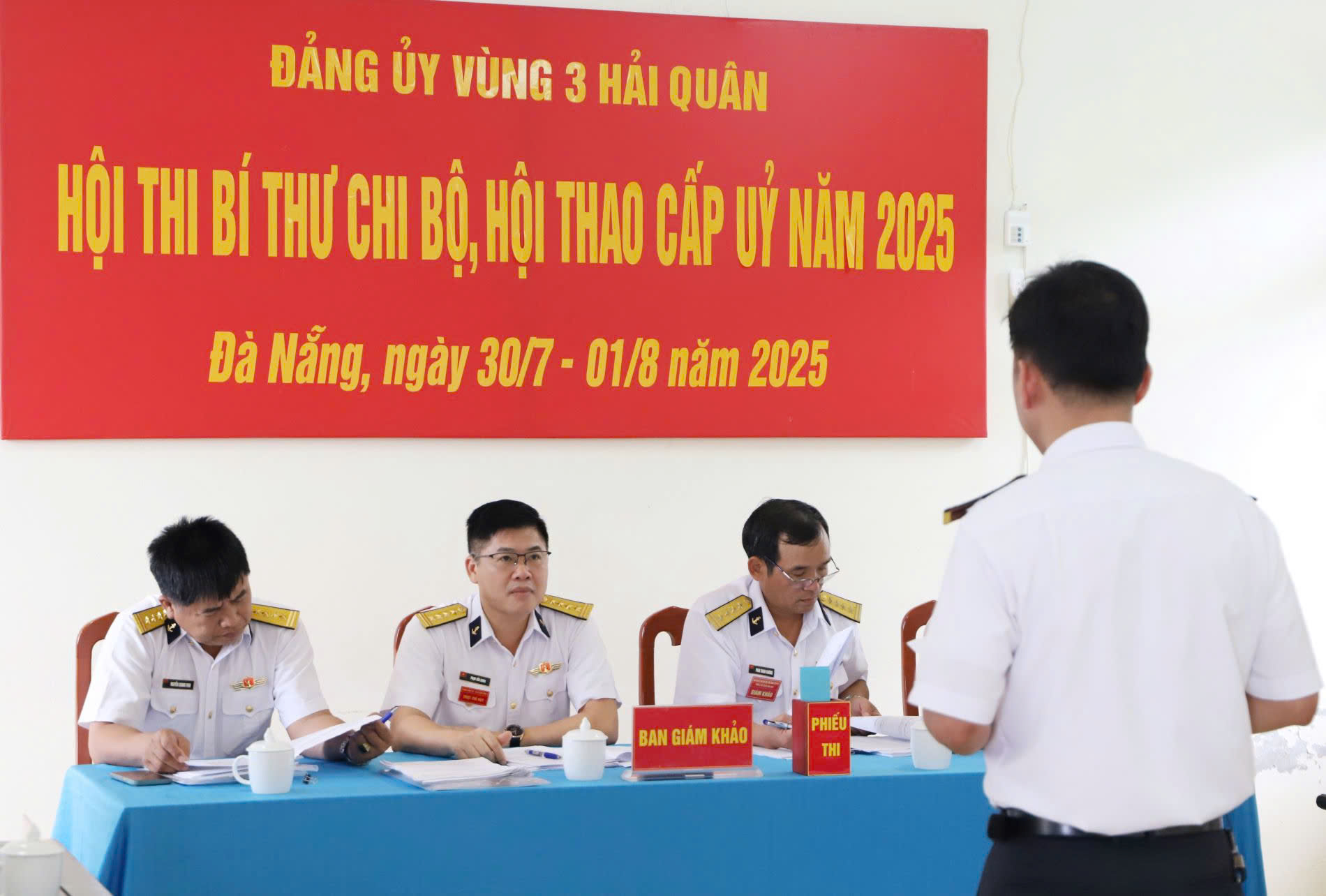 Tạp chí Biển Việt Nam - Sáng ngày 30/7/2025, tại TP. Đà Nẵng, Vùng 3 Hải quân tổ chức Khai mạc Hội thi Bí thư Chi bộ, Hội thao Cấp ủy năm 2025. Đồng chí Chuẩn Đô đốc Nguyễn Đăng Tiến - Bí thư Đảng ủy, Chính ủy Vùng chủ trì và phát biểu khai mạc. Tham dự buổi lễ có các đồng chí trong Đảng ủy, Thủ trưởng Bộ Tư lệnh Vùng 3, các đồng chí trong Ban Tổ chức, Ban Giám khảo, lãnh đạo, chỉ huy các cơ quan, đơn vị trong toàn Vùng, đặc biệt là 30 Bí thư Chi bộ và 15 Chi ủy được tuyển chọn qua các vòng thi cấp cơ sở cùng hơn 200 cán bộ, chiến sĩ trong toàn Vùng.