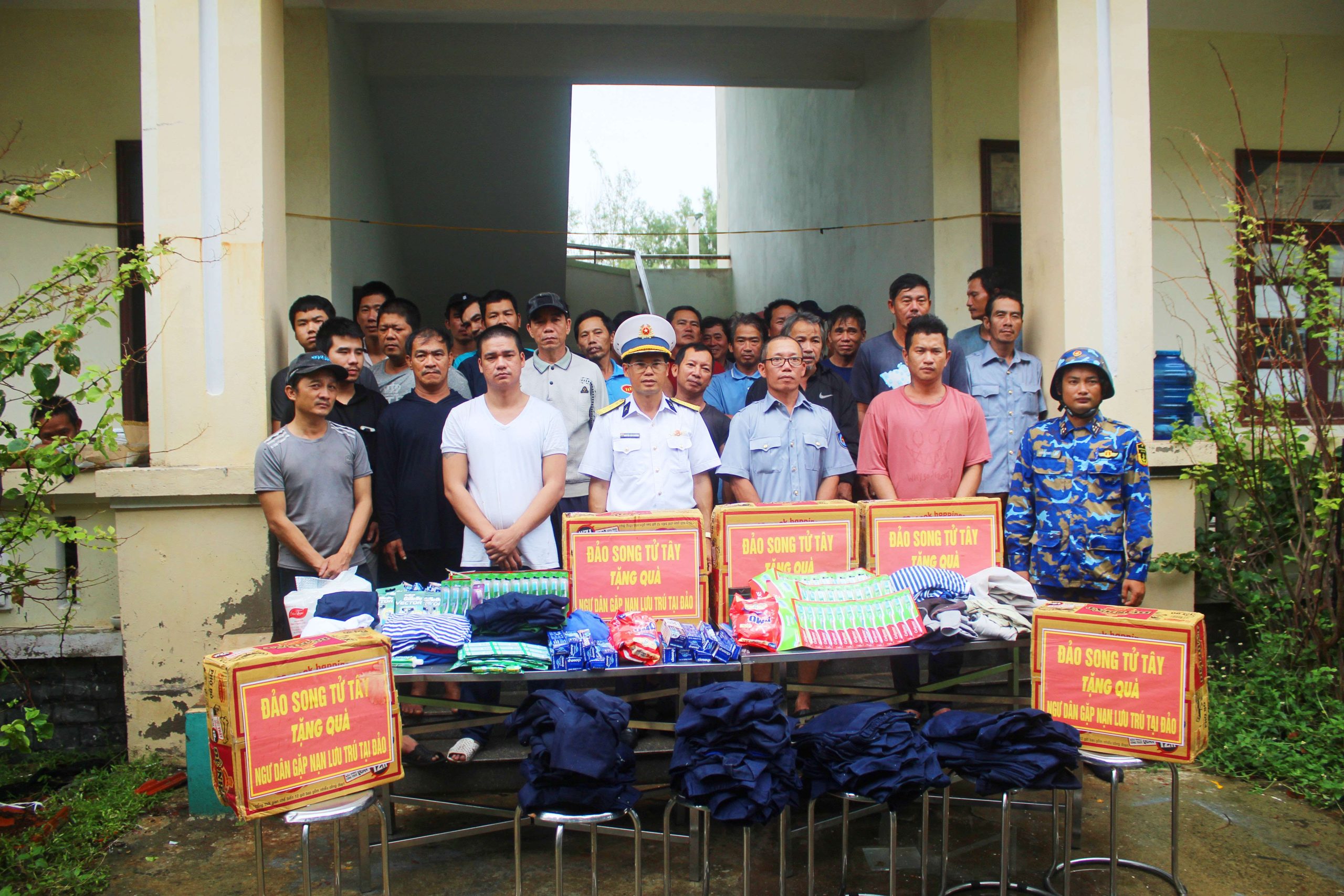 Cán bộ, chiến sĩ đảo Song Tử Tây đã khẩn trương bố trí nơi ăn, ở, sinh hoạt cho các ngư dân; tổ chức khám sức khỏe, cấp phát thuốc và trao tặng nhu yếu phẩm gồm 5 thùng phở, 80 bộ quần áo, 52 tuýp kem đánh răng, 52 bàn chải đánh răng, 20 gói bột giặt, 30 bánh xà bông tắm, 60 gói dầu gội đầu và 52 dao cạo râu.