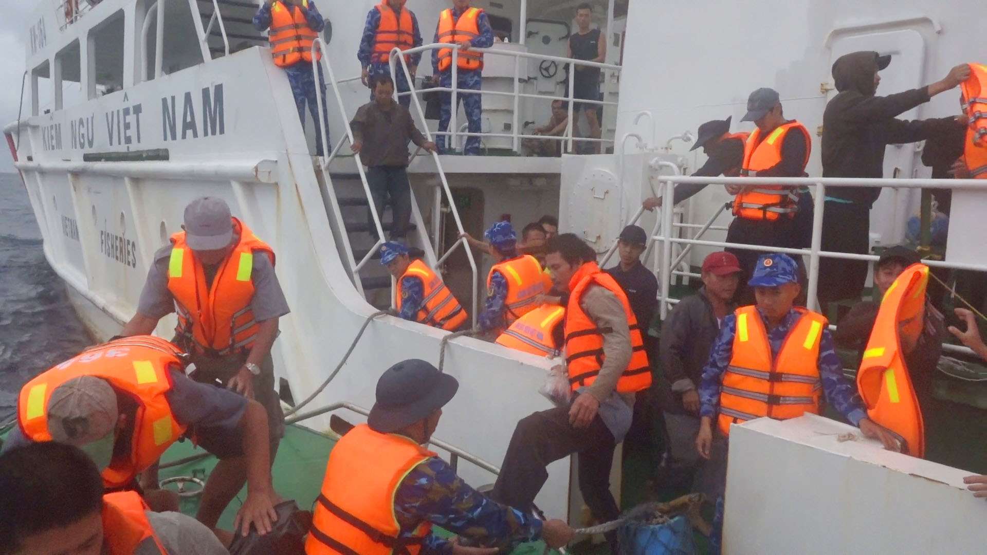 Vùng 4 Hải quân đưa 52 ngư dân gặp nạn trên biển vào đảo Song Tử Tây an toàn