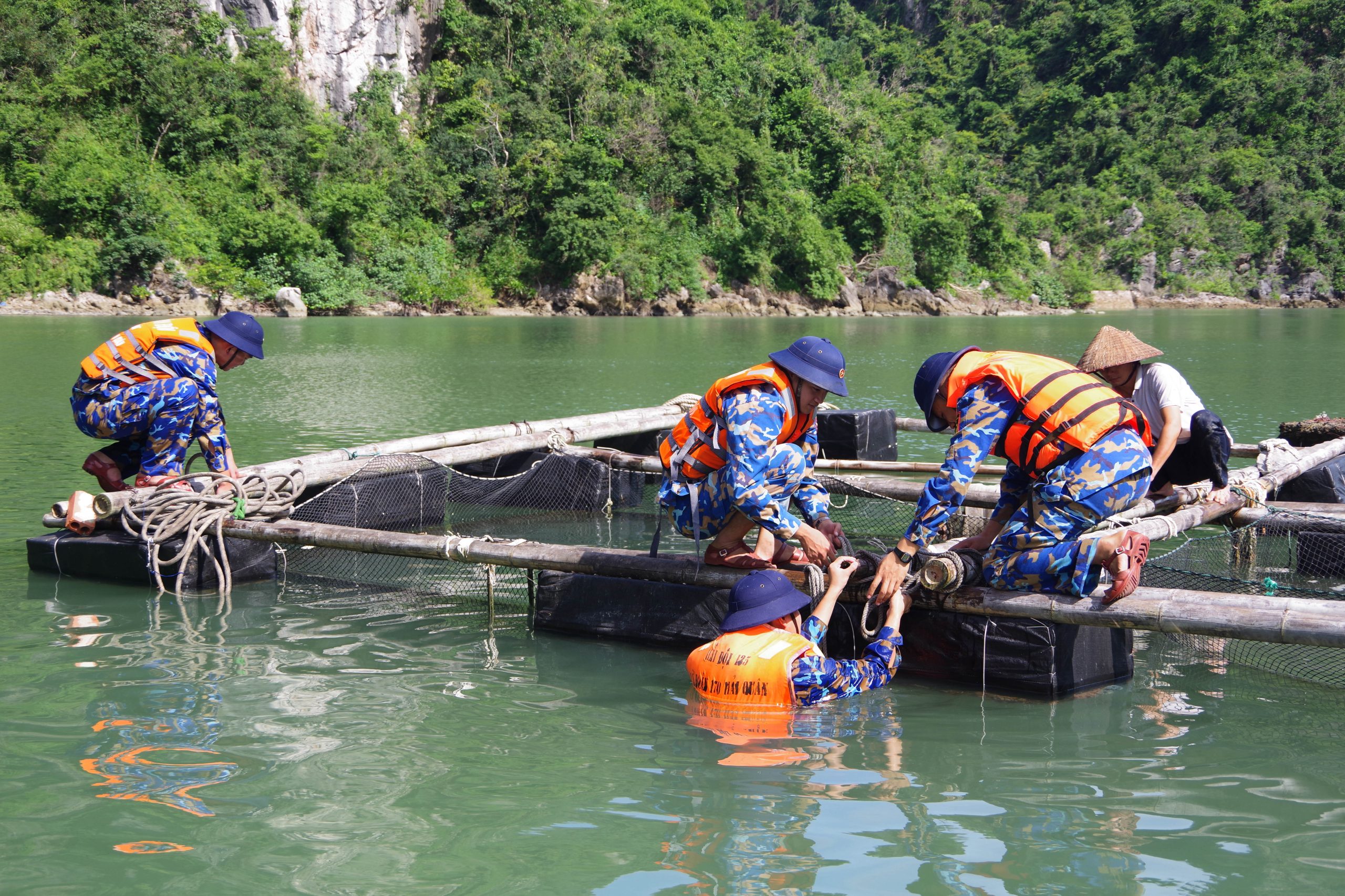 Bên cạnh đó, Vùng 1 Hải quân còn tích cực hỗ trợ nhân dân trên địa bàn trong công tác phòng chống bão. Cán bộ, chiến sĩ đã phối hợp chặt chẽ với chính quyền địa phương, ra quân giúp người dân chằng chống nhà cửa, gia cố tàu thuyền và lồng bè nuôi trồng thủy sản. Nhiều hộ gia đình đã được hỗ trợ thu hoạch cá và các sản phẩm thủy sản kịp thời, tránh được thiệt hại lớn do bão gây ra.