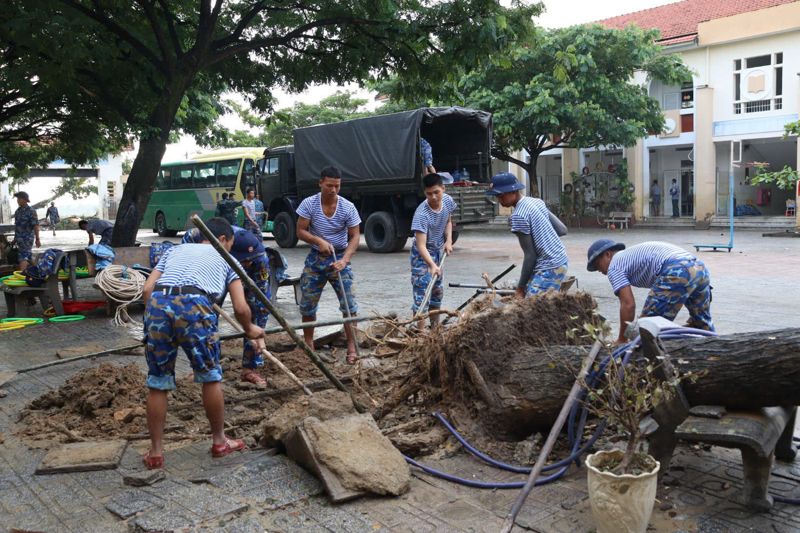 Mưa lũ kéo dài khiến nhiều công trình dân sinh, nhà ở, trường học bị bồi lấp, lượng bùn đất tồn đọng lớn, ảnh hưởng nghiêm trọng đến sinh hoạt của nhân dân. Trước tình hình đó, lực lượng Vùng 4 tập trung tổng vệ sinh, khơi thông dòng chảy, thu gom rác thải, làm sạch đường giao thông và hỗ trợ từng hộ dân khắc phục hậu quả.