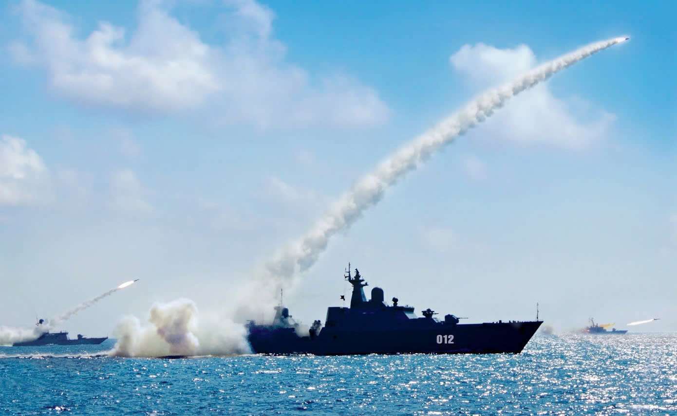 Biên đội tàu chiến đầu của Vùng 4 Hải quân diễn tập bắn đạn thật trên biển.